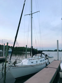 Jade started life in Portsmouth, Rhode Island as Hull #269. According to the owner's manual, the first owner named her My Evy and kept her at the Miramar Yacht Club in Sheepshead Bay, NY. I was told the next owner renamed her Jade, an acronym for his sons John, Andrew, David, and Edward, and she had Hershey, PA marked as her home port. The third generation of owners, who I bought Jade from, kept the boat in Burgess, VA. I sailed her down to her new home port - Urbanna, VA.