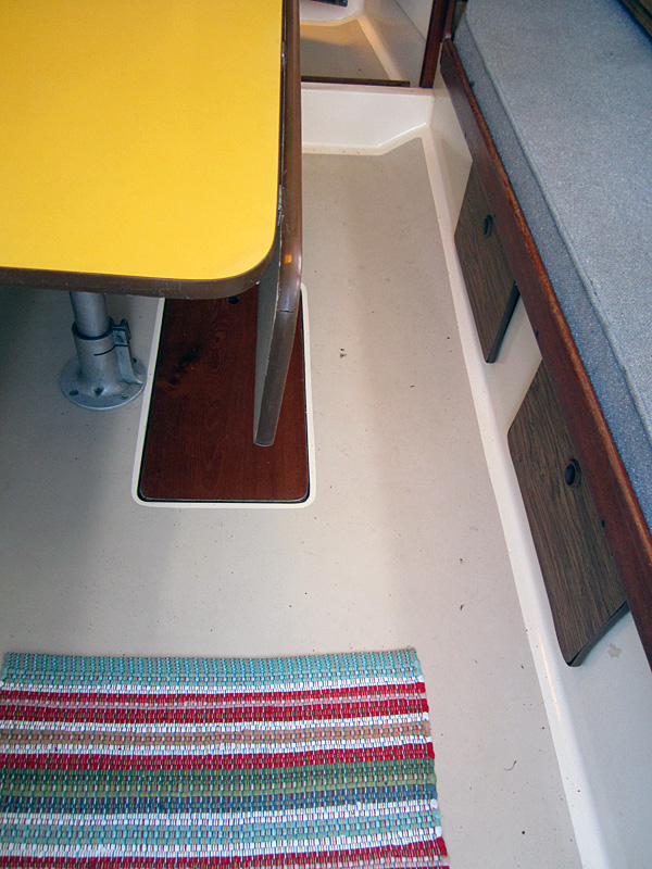 Interior of cabin, starboard, looking forward at deck