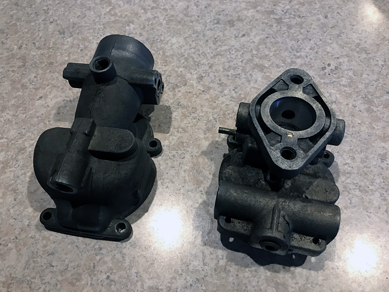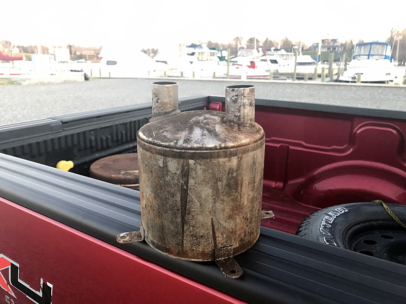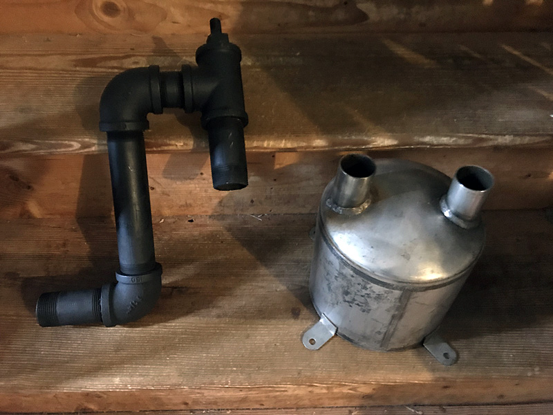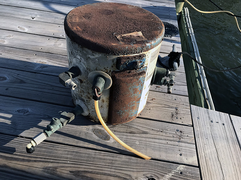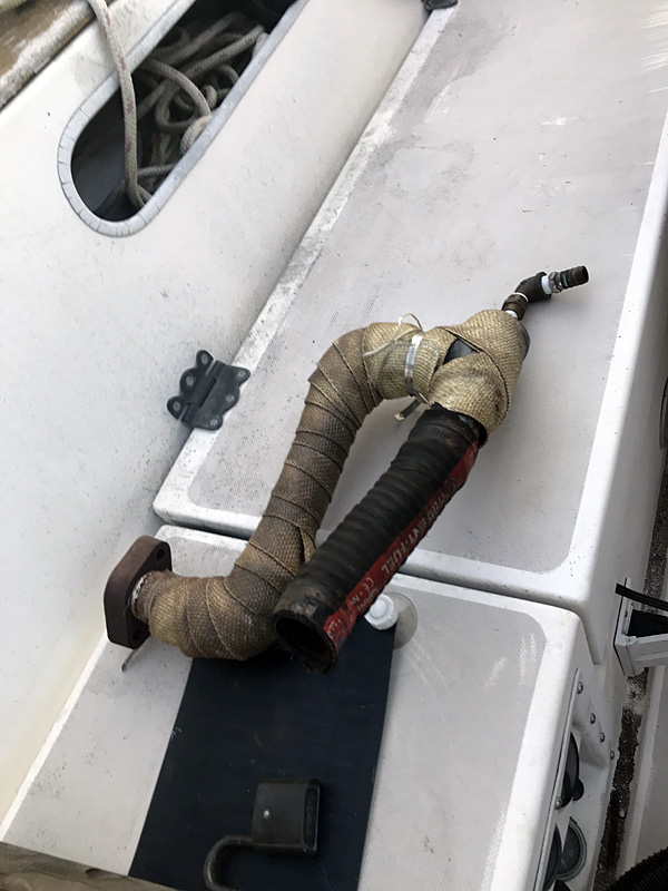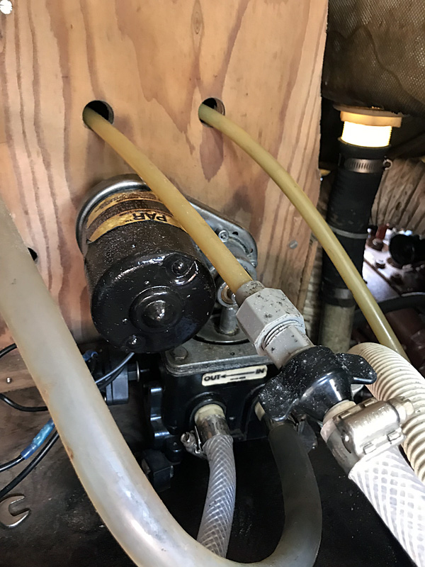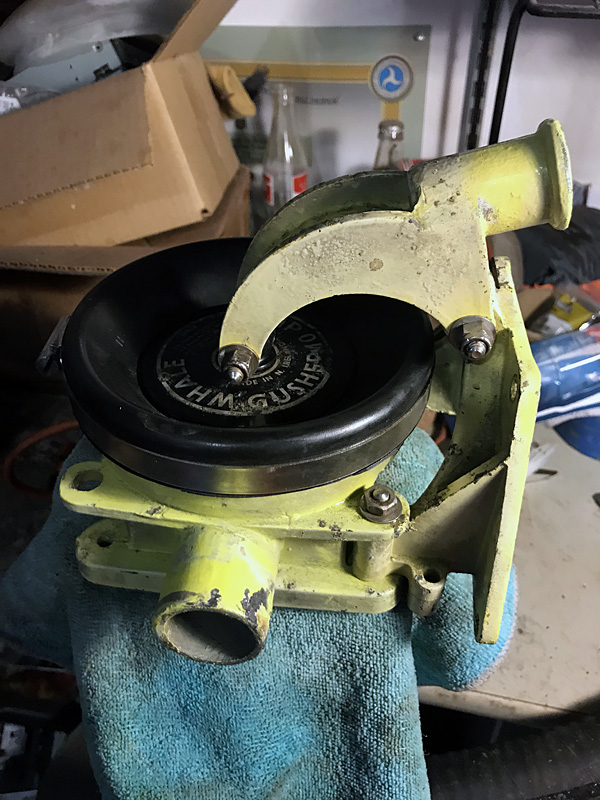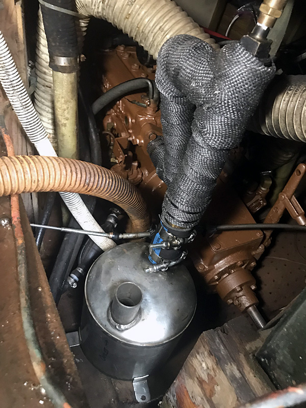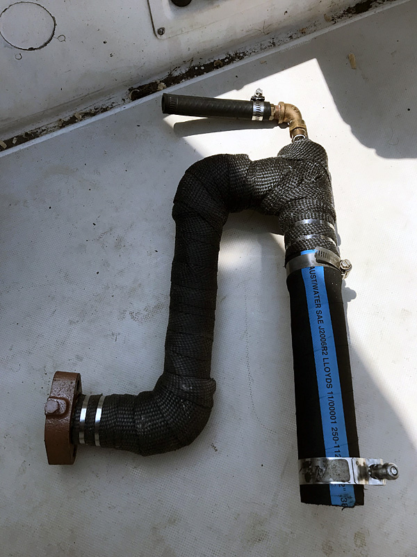 Or so I thought. Overheating kept occuring... But I found after bypassing the cooling water around the water lift muffler that all worked fine, so I reasoned that there was a blockage downstream from the outlet of the engine. I removed the muffler components, cleaned them up, and reinstalled them - from the engine to the muffler outlet. To head off future problems, I installed a three-way valve at both the inlet and the outlet, to (1) facilitate flushing the engine, and (2) bypass the muffler, respectively.