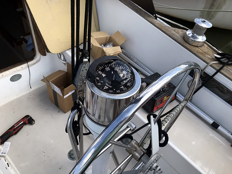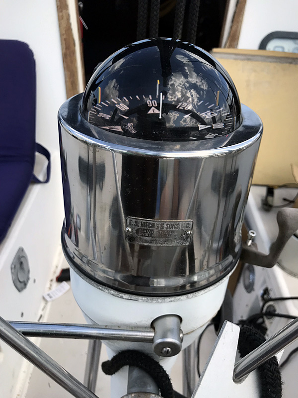 I was sailing her starting Memorial Day weekend (one year anniversary of the fiasco sail from Reedville). I found time to fix the fresh water system pump, which had earlier come apart (luckily I found the small pulley in the bilge!) and overhauled the manual, built-in bilge pump with a repair kit (the Irish pump manufacturer, Whale, is still cranking them out). It pumps so well that I haven’t installed the 12 Volt pump yet! I also overhauled two spare carburetors, and re-wired the engine electrical system - adding a common bus for the ignition circuit. I even found a replacement Ritchie Globemaster™ SP-5 Compass on eBay.