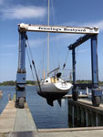 The boat was "on the hard" at Jennings Boatyard in Reedville. I started working in December of 2017 to get it ready for launch for Memorial Day Weekend in 2018 since I planned to sail down her to Urbanna. Besides replacing a frozen toilet overboard valve, cleaning the sails, buffing the hull, and replacing navigational lighting, I did work on the engine: